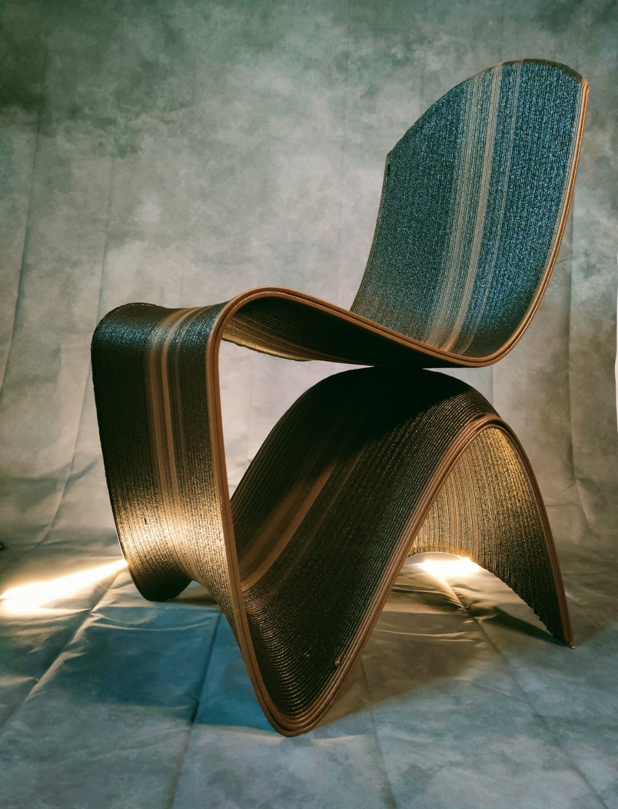 Esta silla innovadora, impresa en 3D, está fabricada con una mezcla única de residuos de café y trazas de pino, creando una pieza que fusiona diseño vanguardista con sostenibilidad. Su estructura, resistente y ligera, aprovecha las propiedades naturales de ambos materiales, ofreciendo una estética cálida con texturas orgánicas y aromas sutiles. Además de ser ecológica, la silla destaca por su durabilidad y comodidad, gracias a un diseño ergonómico que se adapta a cualquier espacio. Cada silla es un testimonio del uso creativo de recursos naturales, transformando materiales reciclados en mobiliario funcional y elegante.
